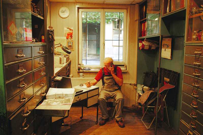 Das Telefon läutet, Kniezanrek beginnt mit dem Anrufer über einen Solex-Vergaser zu fachsimpeln, zieht gleichzeitig eine von dutzenden abgegriffenen Holzladen heraus und kramt eine Handvoll Messingdüsen hervor. Diese hält er eine nach der anderen unter eine große Lupe, bis er zufrieden den passenden Querschnitt gefunden hat. Den Hörer am Ohr gibt er Bescheid, der Reparaturauftrag kann erledigt werden. „Ich habe hier zigtausende Ersatzteile lagern und in meinem Haus in Niederösterreich etwa noch einmal so viele", sagt er. Ein riesiger Schatz aus Messing, Zink, Eisen und Stahl, den die Besitzer von Oldtimern in Österreich und ganz Europa zu schätzen wissen. „Ich bekomme kaputte Vergaser aus Deutschland, der Schweiz, Tschechien, ja sogar aus Griechenland und Madeira mit der Post geschickt, repariere sie und schicke sie wieder zurück", sagt der Düsen-Experte. 90 Prozent seiner Kunden kommen aber immer noch aus Österreich, sie suchen die traditionsreiche Werkstatt in der Czerningasse 7 auch gerne persönlich auf. Ein kräftiger Mann mit Rocker-T-Shirt und Zopf kommt herein und drückt Kniezanrek einen defekten Vergaser in die Hand. „Der ist von einem Mercedes-Bus, der soll möglichst noch die nächsten dreißig Jahre halten", wünscht er. Zuerst muss Kniezanrek aber noch den wunderschönen blauen A-Manta flottmachen, der in der Einfahrt wartet. Die Anamnese: unrunder Motorlauf, Verschlucken beim Gasgeben, Absterben im Stand. Kniezanrek löst die Schrauben, rüttelt den Vergaser aus dem Motorraum, bringt ihn zu seiner Werkbank und zündet sich eine Zigarette an. Den Rauch bläst er mit einem feinen Röhrchen durch die Benzin- und Luftkanäle des Aggregats, um die Durchlässigkeit zu prüfen.