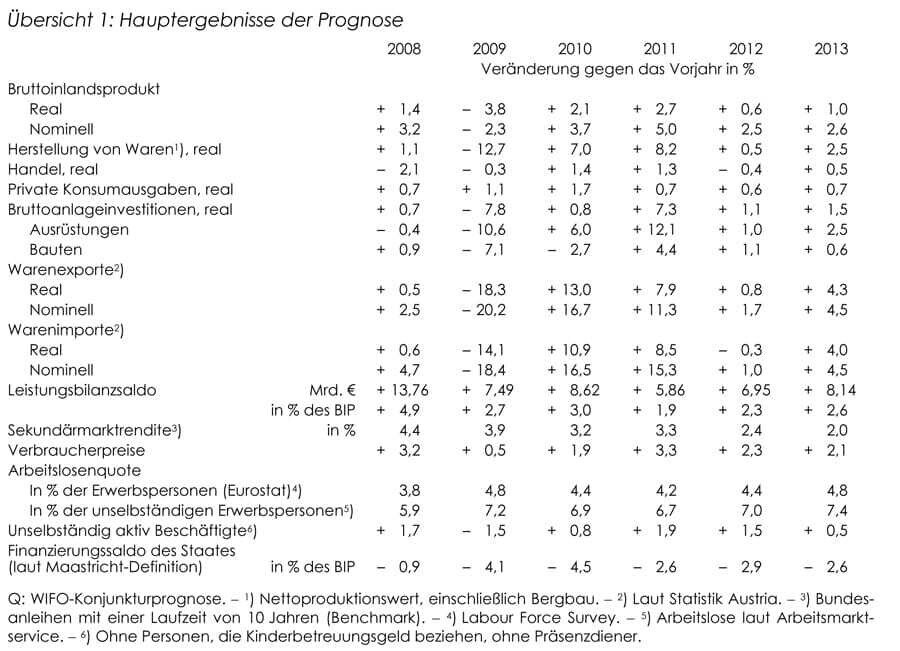 Gegenüber der Prognose vom Juni 2012 revidiert das WIFO seine Einschätzung für das Jahr 2013 aufgrund der Verschlechterung des internationalen Umfeldes leicht nach unten (vgl. Übersicht 1: Hauptergebnisse der Prognose, links).