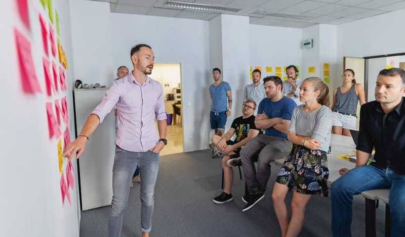 Meetings waren gestern: Wer agil sein will, steht zusammen, denn stehen geht schneller als sitzen.