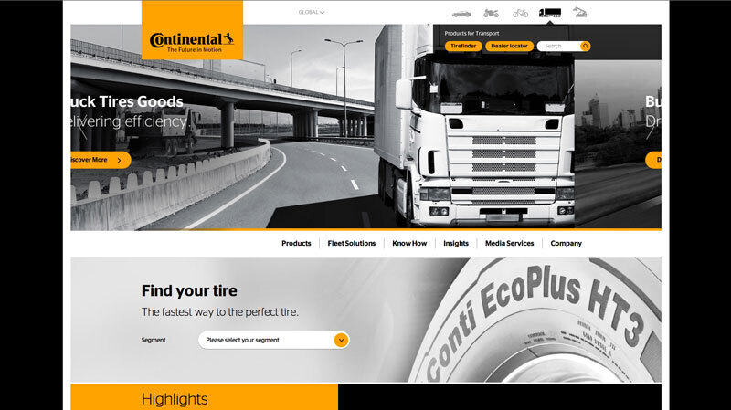 Der Reifenhersteller Continental hat seine Nutzfahrzeug-Webseite überarbeitet. Das neue Design wurde u.a. für die Darstellung auf mobilen Endgeräten optimiert.