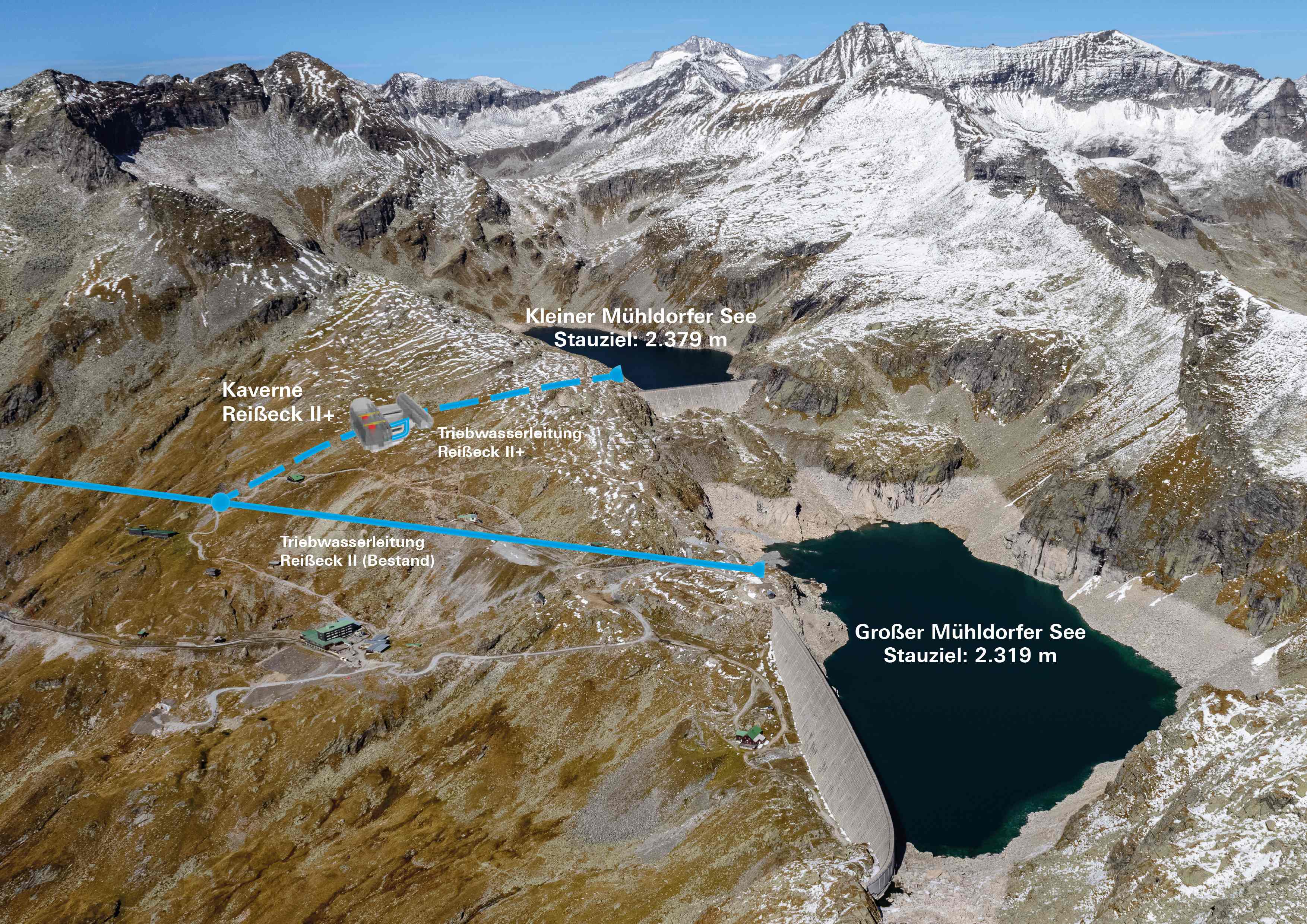 Seit der in 2016 erfolgten Inbetriebnahme des Pumpspeicherkraftwerks Reißeck II zählt die Oberkärntner Kraftwerksgruppe Malta-Reißeck mit in Summe 1.460 MW zu den leistungsstärksten Wasserkraftwerksgruppen Österreichs. Als Oberbecken nutzt Reißeck II die seit den 1960er-Jahren bestehenden Speicher am Reißecker Seenplateau, den Großen und Kleinen Mühldorfer See. Die beiden Speicher sind hydraulisch miteinander verbunden, wobei der Kleine Mühldorfer See etwa 80 Meter (mittlerer Höhenunterschied, abhängig vom Füllstand der Speicher) höher liegt als der Große Mühldorfer See.